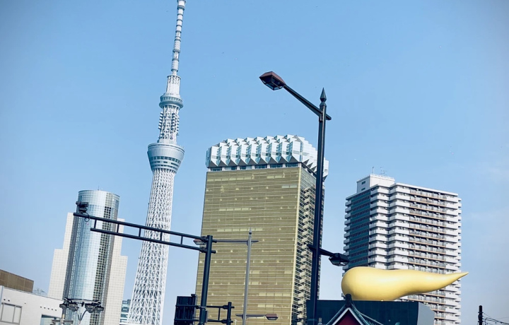 Узнаете историю архитектурных символов района, включая здание Asahi с золотым «пламенем» и Tokyo Skytree.