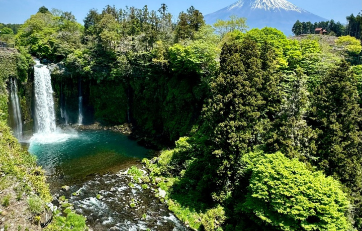Один из самых красивых в Японии. Каскад шириной около 150 метров питается ключевой водой вулкана Фудзи, которая срывается с высоты 20 метров тонкими белоснежными струями. За это водопад получил название «Белая нить».