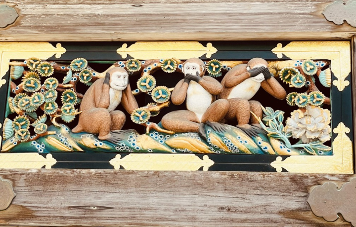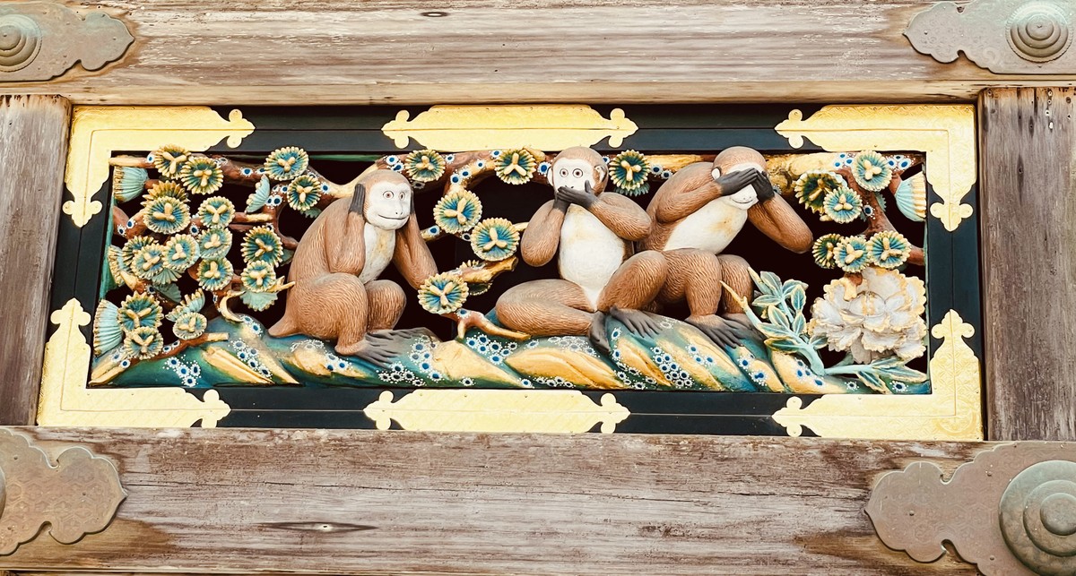 - Рассмотрим знаменитую резьбу «Три обезьяны» и «Спящую кошку»