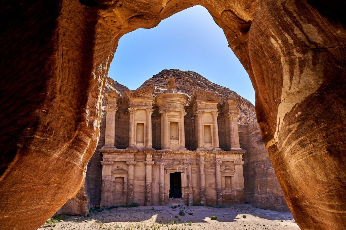Перед вами откроется главный символ Петры с величественным фасадом 40 метров в высоту и 25 метров в ширину.