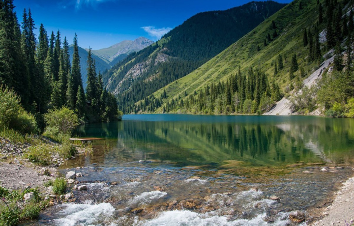 Озёра Кольсай и Каинды. Оба водоёма поразят вас уникальным цветом воды, который меняется от ярко-синего до изумрудного оттенка. Горные пики и живописные еловые леса вокруг озёр создают невероятные пейзажи, способные посоперничать с панорамами Альп.