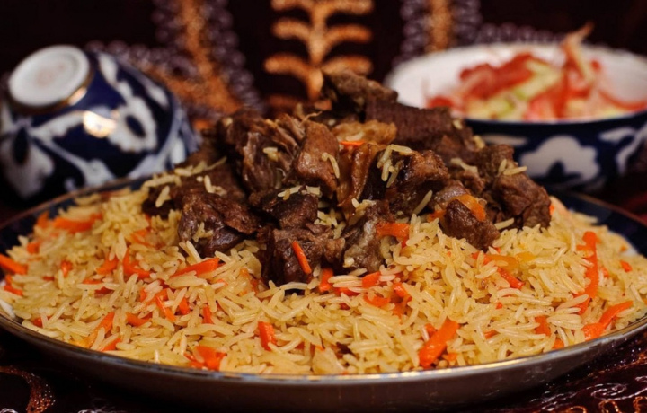 13:00 — Обед (плов, салат, хлебная корзина с бауырсаками, чай, вода)