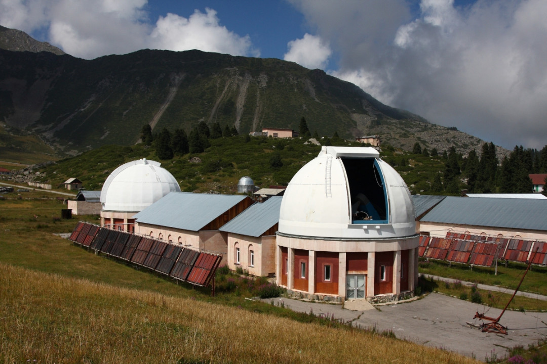 Тянь-Шаньская астрономическая обсерватория (ТШАО) находится в 30 км южнее Алма-Аты на берегу Большого Алматинского озера на высоте 2835 м над уровнем моря. Её построили в 1957 году, с тех пор она пережила несколько модернизаций. Обсерватория оснащена двумя телескопами с диаметром зеркала в один метр, несколькими аппаратами меньшего размера и большим радиотелескопом. Как говорят учёные, благодаря удачному расположению аппаратура позволяет видеть космические объекты до границ Вселенной. Данные с телескопов автоматически передаются в специальную библиотеку, куда имеют доступ исследовательские институты, участвующие в международных программах. ТШАО состоит из двух подразделений — Астрономической и Специальной солнечной обсерваторий. Они являются частью Национального центра космических исследований Национальной академии наук Казахстана. Стратегические объекты закрыты для посещения, но попасть на обсерваторию с образовательной целью всё же можно по предварительному запросу.