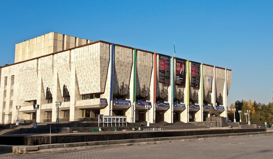Алма-атинский академический театр оперы и балета был основан на базе музыкальной студии, состоявшей из артистов и музыкантов. Студия создавалась в 1933, а в следующем году её преобразовали в театр. Первым был спектакль на основе национальной музыки с использованием традиционных казахских инструментов. Через четыре года музыкальный театр стал называться театром оперы и балета. С основания и до нашего времени немалую часть репертуара наряду с мировой классикой занимают национальные опера и балет на музыку и либретто казахских композиторов. С 80-х годов на сцене театра идут авангардные постановки современных авторов и классических произведений. Здание театра сочетает в себе черты сталинского ампира, поддержанного строгим итальянским классицизмом. Дань национальным традициям отразилась во внешнем декоре здания, имеющего статус национального памятника архитектуры.
