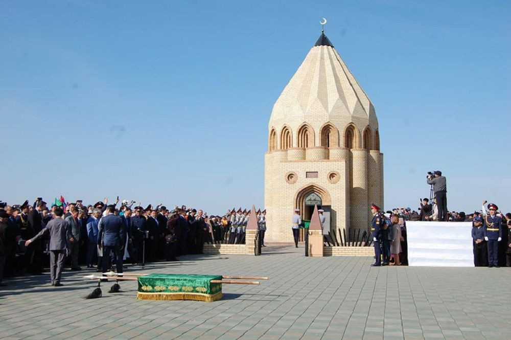 Райымбек Батыр — почитаемый казахский герой, возглавивший в XVIII веке борьбу с ордами калмыков (джунгаров), захватившими Семиречье. По преданию, Райымбек завещал после смерти возложить его тело на белого верблюда и похоронить там, где остановится животное. Батыра с почестями похоронили возле Алма-Аты, позднее памятник вошёл в границу города с восточной стороны. На могиле народного героя была установлена стела и скульптура лежащего верблюда. Во время Гражданской войны 1918-1922 года мемориал был разрушен и восстановлен только в 60-х годах прошлого столетия. Сегодня на его месте построен мавзолей в виде остроконечного гранёного каменного шатра, увенчанного шпилем с полумесяцем. Внутри находится саркофаг с прахом Райымбека Батыра. Рядом расположен источник и зал для совершения молитв. Мавзолей внесён в реестр «Сакральная география Казахстана».