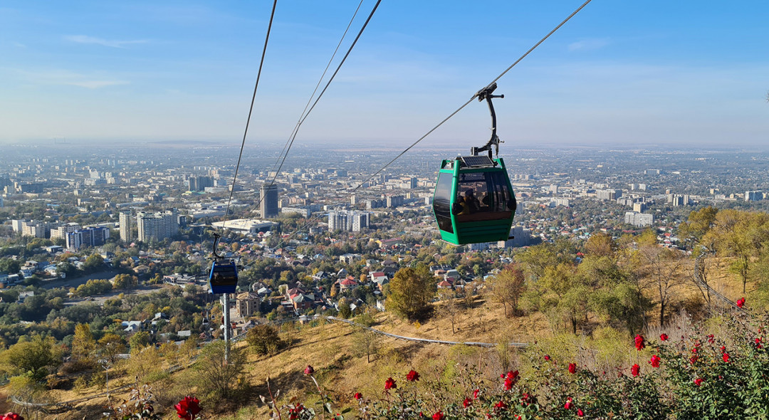 Вторая канатная дорога доставляет жителей и гостей города к спортивным комплексам «Медео» и «Чимбулак». Её построили в 2011 году к зимней Азиаде. На линии работает 115 кабинок, перевозящих за час до 2000 человек. Длина канатной дороги — 4,5 км, расстояние покрывается за 15 минут. Из кабин открываются головокружительные виды на заснеженные горные вершины, каток «Медео» и громадину плотины, оберегающую город от селевых потоков.