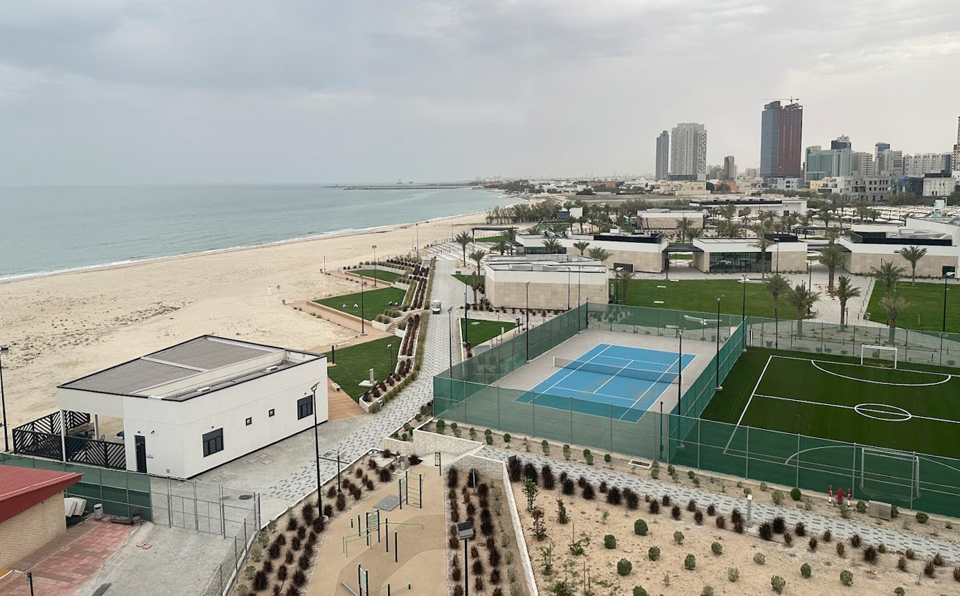 Частный песчаный пляж в районе Фахахиль принадлежит курортному комплексу Al Kout. Гости могут расслабиться на лежаках под пальмами, пообедать в пляжном кафе с видом на залив или устроить пикник. Пляж с чистым песком и мелководьем редко бывает многолюдным — места хватает всем. Рядом находится отель с бассейнами, искусственным озером, фонтанами и спа-комплексом. К нему примыкает небольшая марина для катеров. На территории курортного комплекса работают рестораны международной кухни.