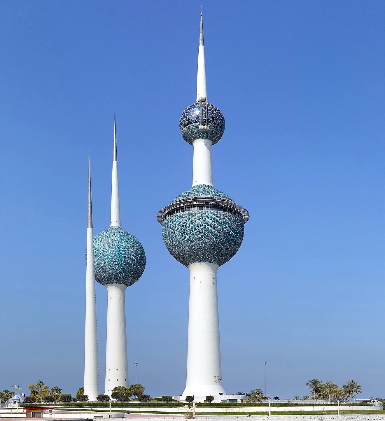 Группа из трёх высотных железобетонных башен на мысе у Персидского залива — одна из главных достопримечательностей и символ Эль-Кувейта. Их строительство завершилось в 1976 году, а официальное открытие состоялось в феврале 1977-го. Это не просто архитектурный ансамбль, украшающий город, а инженерные сооружения. Две башни — водонапорные, третья используется для их освещения и электропитания.