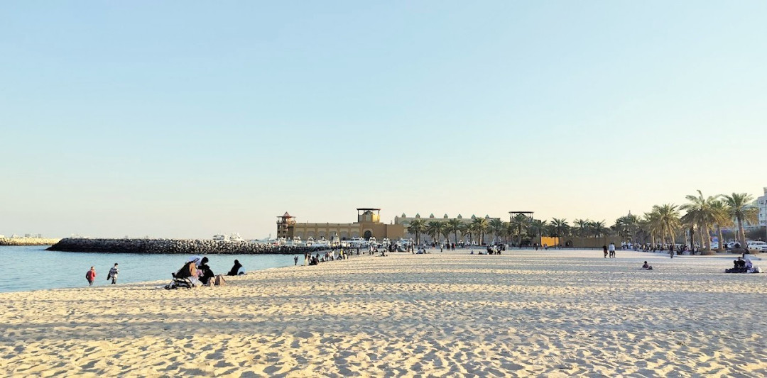 Marina Beach в районе Салмия протянулся вдоль Персидского залива по соседству с одноимённым парком, пятизвёздочным отелем и несколькими ресторанами международной кухни. Высокие пальмы, тихое море и мелководье делает пляж Марина идеальным местом для расслабленного отдыха и купания. Рядом с пляжем есть автопарковка, работают киоски с мороженым и напитками, пункты велопроката, скейт-парк, надувные горки для детей. Террасы некоторых кафе и ресторанов выходят прямо к воде.