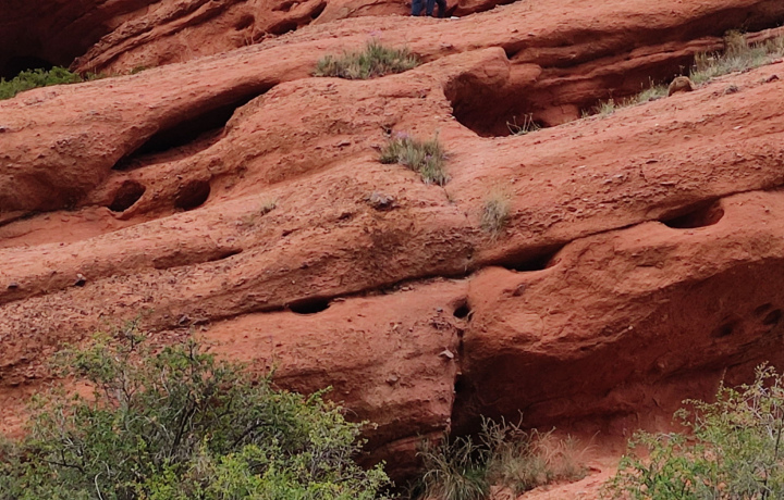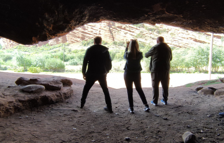 Жууку славится своими красными рельефными горами, дырявыми как сыр. Здесь много пещер, и когда-то была одна из ставок хана Умбетали.