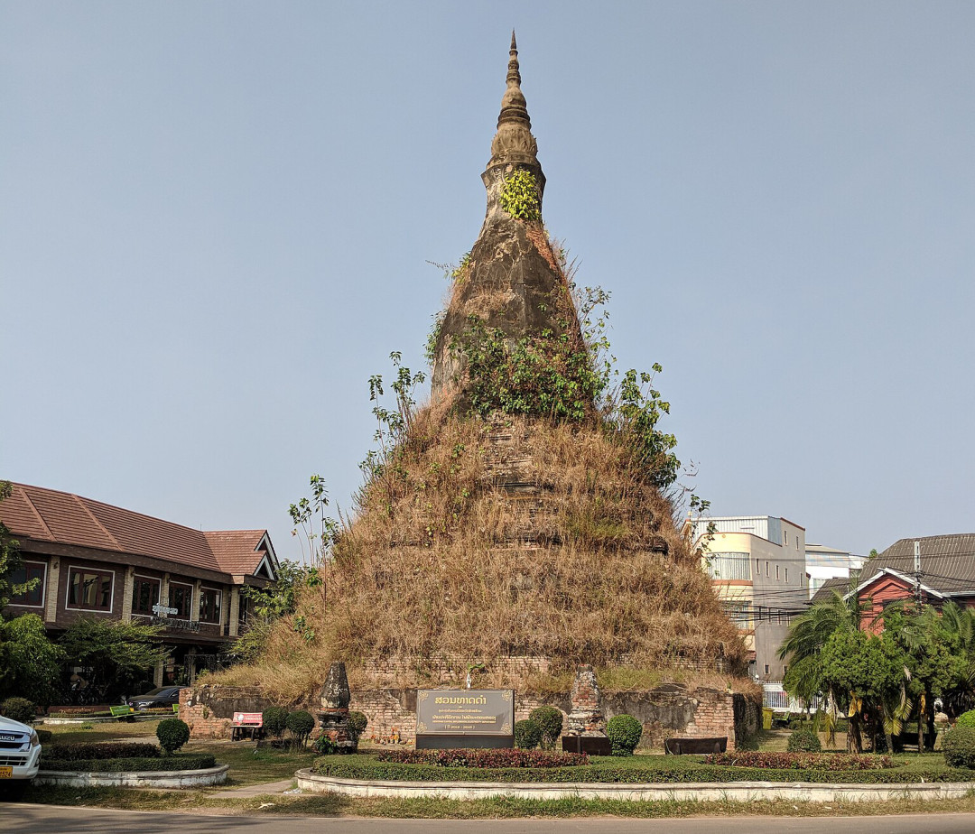 Есть во Вьентьяне старинная достопримечательность, которая разительно отличается от обильно украшенных буддийских святынь. Это Чёрная ступа, стоящая в центре города, недалеко от триумфальной арки Патусай. Когда-то она была покрыта золотом, но в 1827 году сиамское войско разгромило город и содрало со ступы золотое покрытие. От неё остался потемневший от времени кирпичный остов. Реставрировать культовое сооружение не стали, оставив его как память о важной вехе в истории страны. Сегодня ступа совсем почернела, покрылась мхом и редкой растительностью. Вокруг расположены несколько кафе, откуда можно сделать удачные снимки исторического памятника. У подножия ступы обустроена площадка, стоят скамейки.