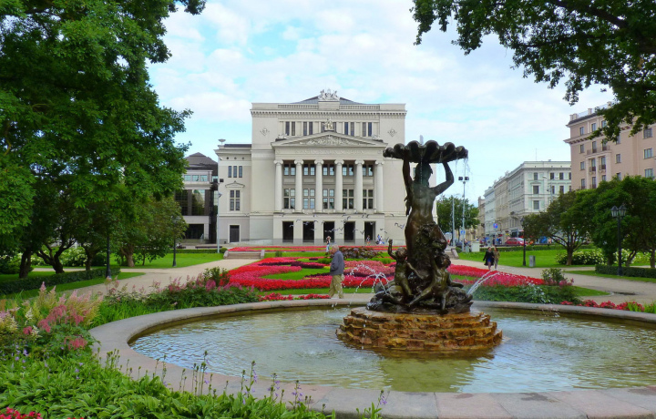 Латвийская национальная опера — главный театр страны. Здание построено в 1863 году по проекту архитектора Людвига Бонштедта. Тогда оно называлось 1-м Немецким театром. По великолепию и масштабу его можно сравнить с Большим театром в Москве. Фасад здания украшает Аполлон и герои античной мифологии. Внешним декором и интерьерами занимались немецкие скульпторы и художники.