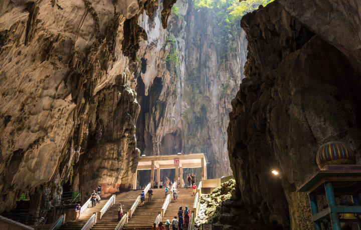 Batu Caves — это известная достопримечательность Малайзии, расположенная недалеко от Куала-Лумпура. Один из самых интересных фактов о Batu Caves — это их религиозное значение. Эти пещеры являются одним из крупнейших индуистских святилищ за пределами Индии, посвящённым богу Муругану. На входе к храмовому комплексу стоит гигантская золотая статуя бога Муругана высотой 42,7 метра — это одна из самых высоких статуй этого божества в мире!