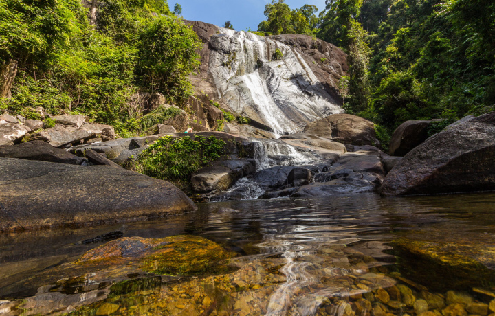 В этом тропическом лесу растут деревья высотой более 60 метров, а водопад имеет два уровня — внизу и наверху. Наверху вас ждут естественные бассейны, а с вершины открывается вид на океан и канатную дорогу.