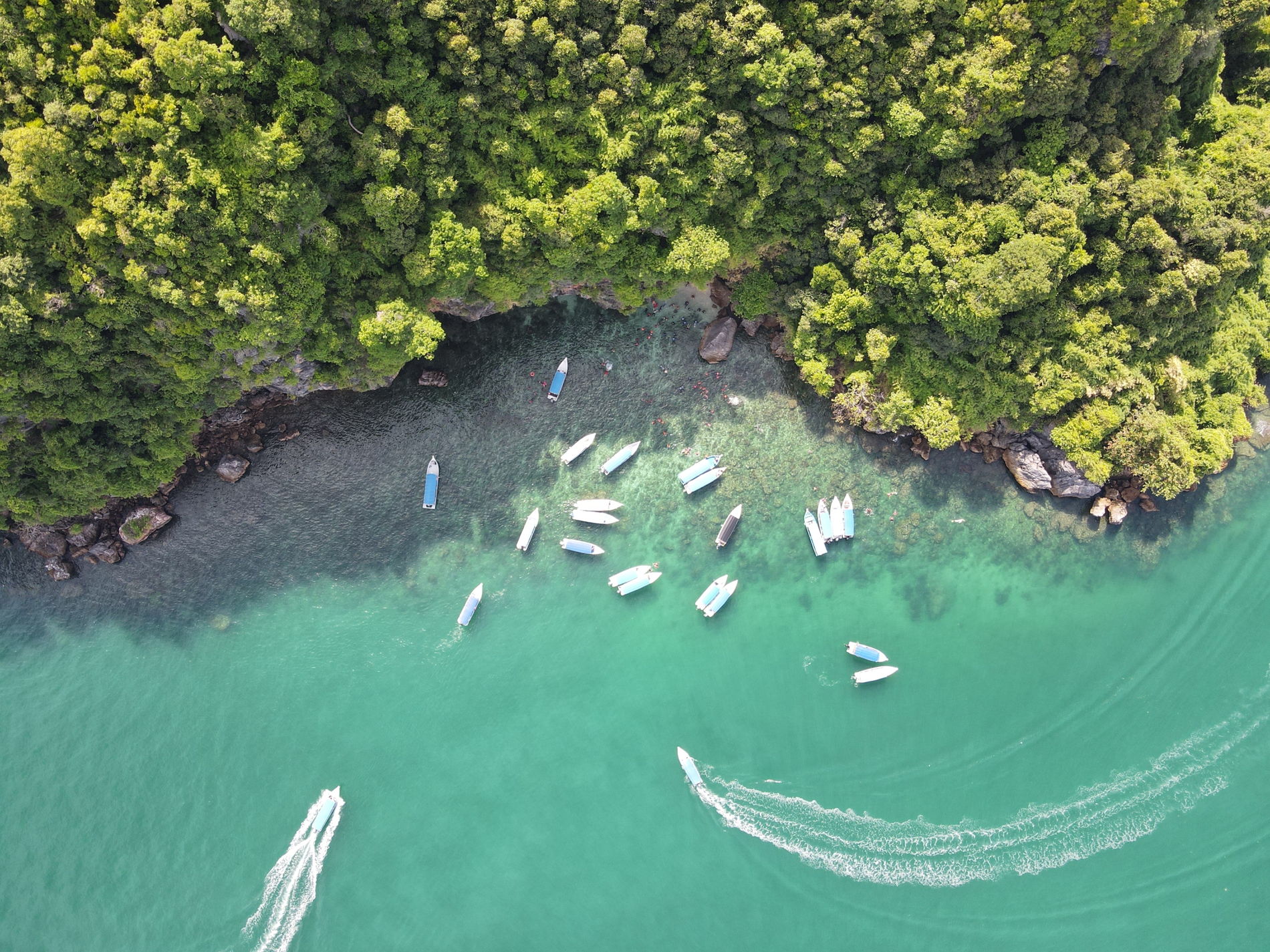 Вы встретитесь со шкипером на пристани Килим и отправитесь на скоростном катере по водам Андаманского моря. Остров Дангли — небольшой и уникальный, здесь нет пляжа, поэтому лодки причаливают прямо к скалам, откуда можно прыгнуть в зелёные воды. Это место известно своей