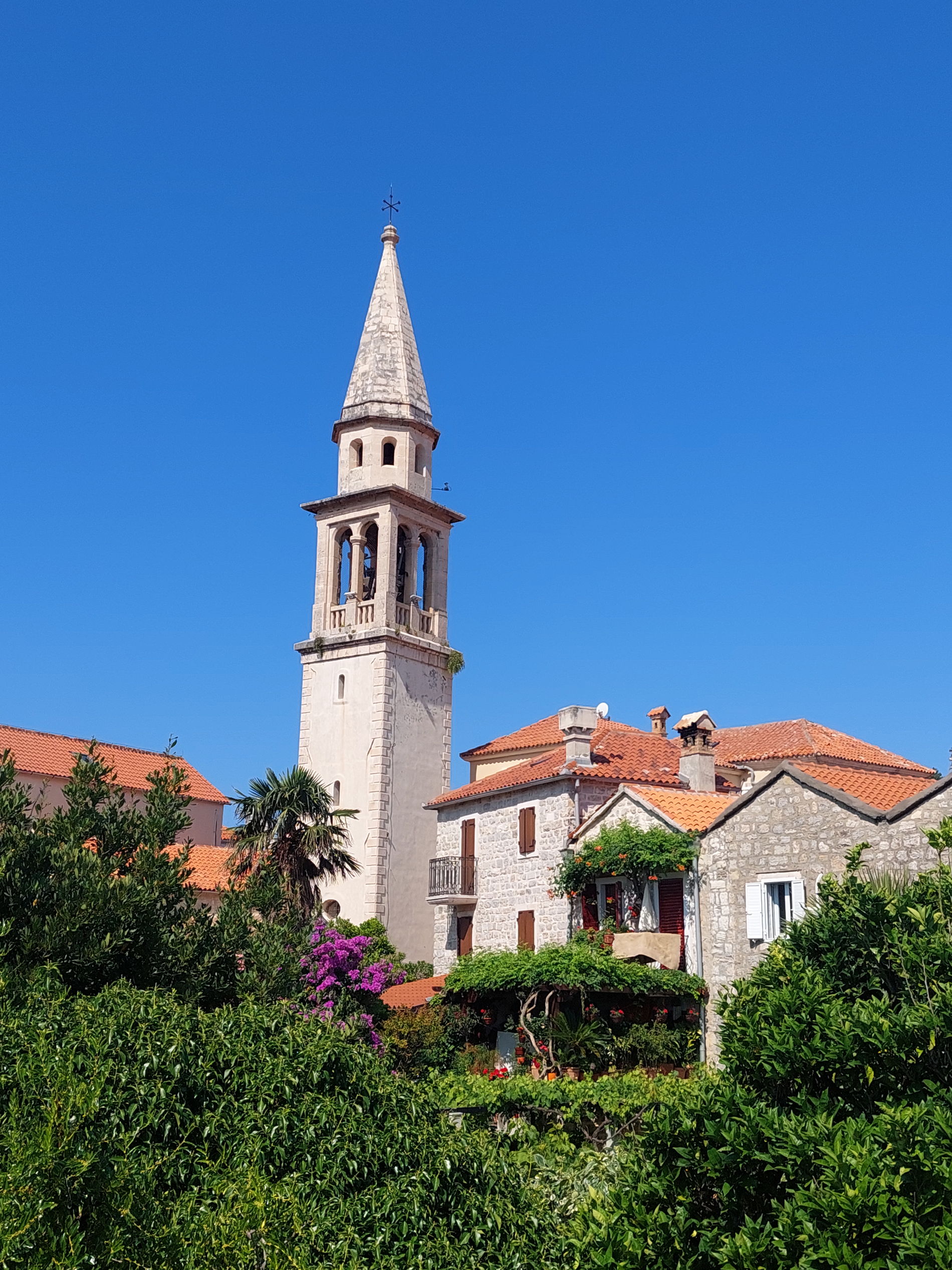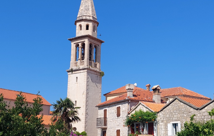 Доминанта площади (VII в., перестроена в XVII в.) с высокой колокольней. Внутри хранятся уникальная икона Богоматери Будванской и богатая ризница.