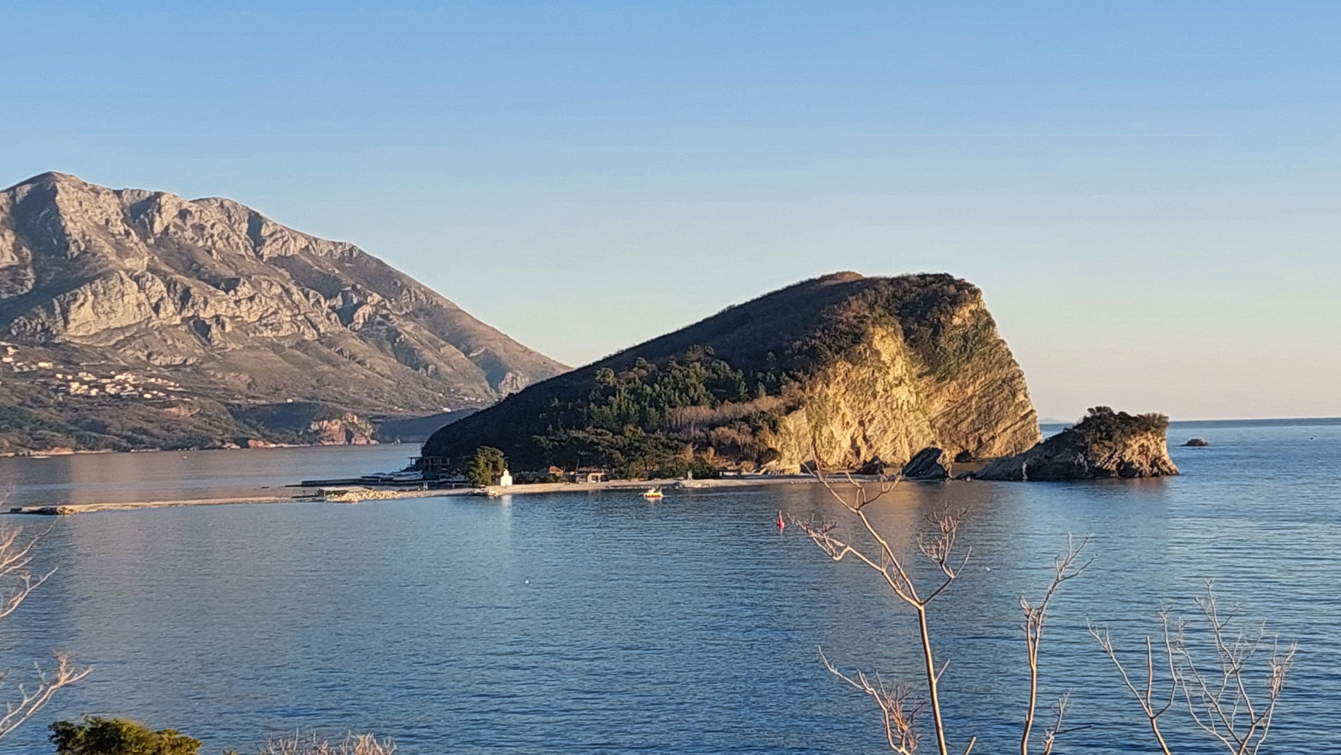 Ворота, уходящие в море. Отсюда открывается фотогеничный вид: остров св. Николая, узкая бухта и синева Адриатического моря.
