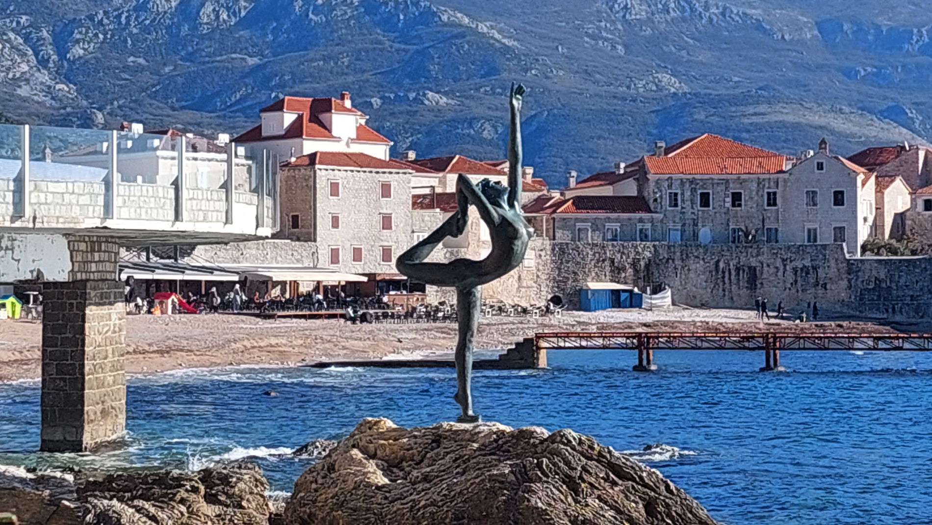 Возвращение к морю — спускаясь по улице Негоша, мы выйдем к берегу Адриатики, где нас встретит изящная скульптура «Балерина» — современный символ города.