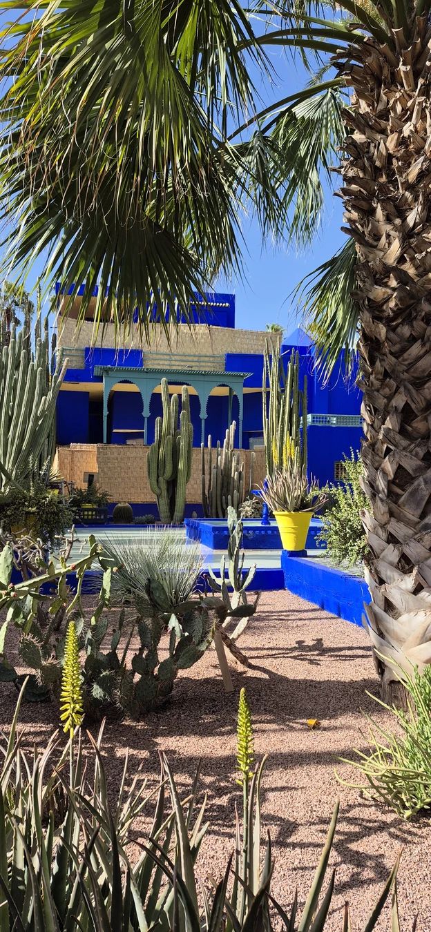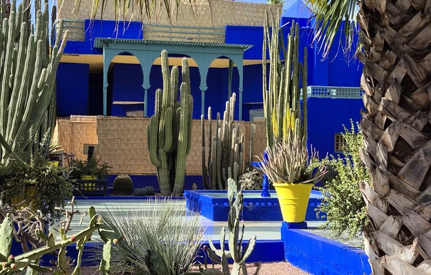 Погуляем по оазису с экзотическими растениями и бамбуковыми аллеями. Его визитная карточка — яркий декор цвета «синий Мажорель». Это место вдохновляло Ив Сен-Лорана и сегодня манит эстетикой и стилем.