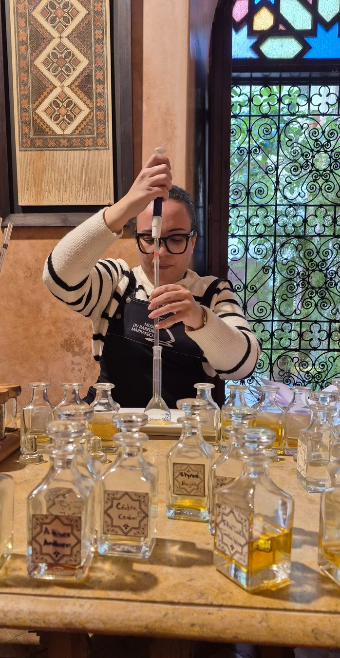 Посетим царство запахов. Здесь собраны картины, вдохновлённые ароматами и цветами Марокко, и старинные флаконы — некоторым больше века! Обсудим легенды, символику и связь с культурой, погрузимся в историю духов и масел, поговорим о редких ингредиентах — нероли и амбре.