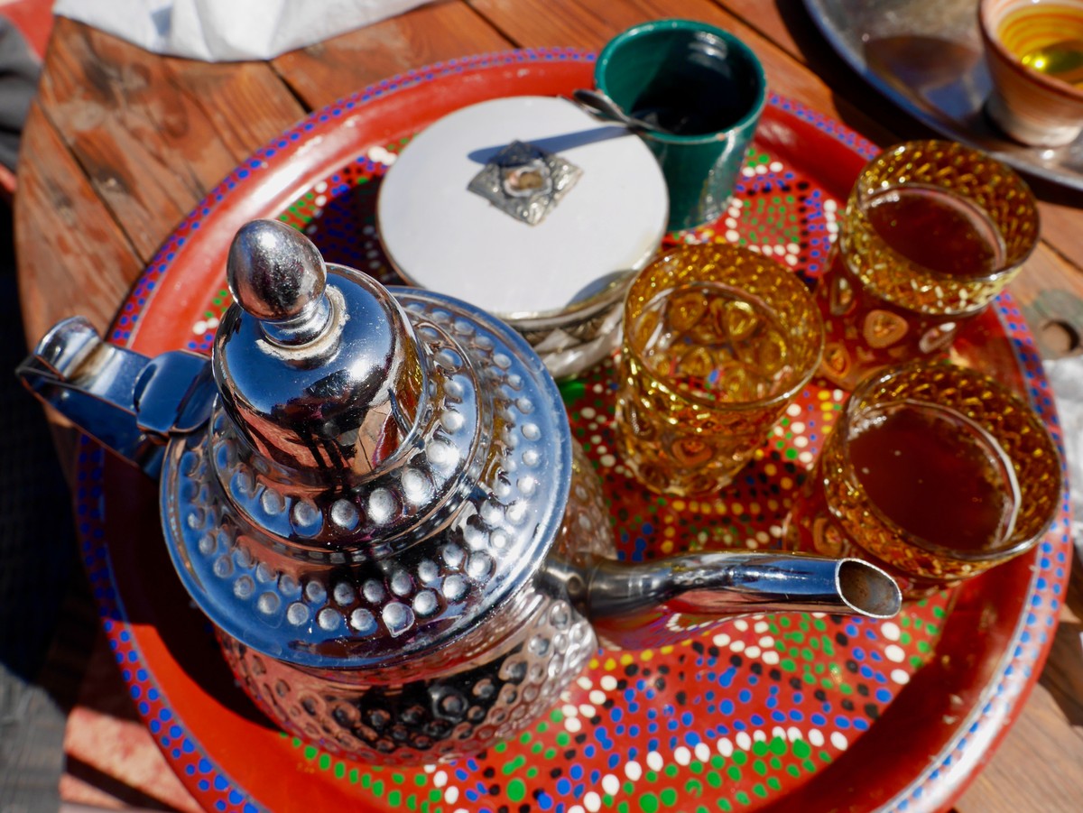 12:00 — обед у реки. Вас будет ждать тажин с мясом и овощами, приготовленный в традиционной посуде.