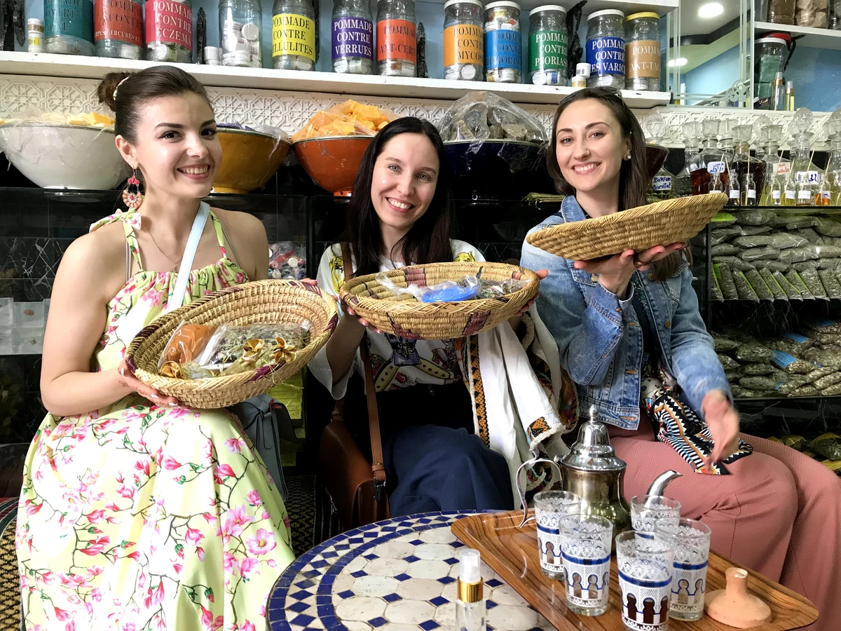 Искусство торговли имеет тысячелетние традиции — о том, как они появились, и какие тонкости нужно знать каждому, кто погружается в это увлекательное шоу, мы поговорим на прогулке. У вас будет возможность пройти своеобразный мастер-класс по овладению хитрыми и нехитрыми приёмами восточного торга. По пути вы узнаете о символике и прикладном значении товаров на марокканских базарах, о хамелеонах и джиннах, о парфюмерных маслах и отличии берберской амбры от обычной. И многом-многом другом!