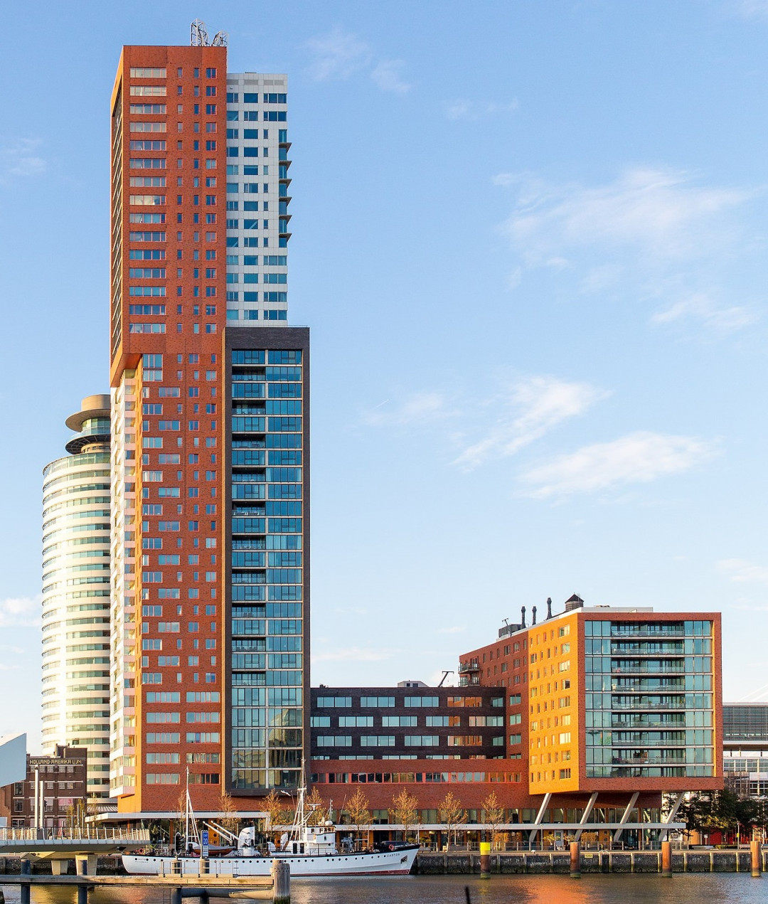 Рядом с мостом Эразма возвышается комплекс De Rotterdam, названный в честь корабля, перевозившего в XIX веке эмигрантов из Нидерландов в США. Величественное сооружение из трёх вертикальных и одного горизонтального блока создало архитектурное бюро OMA. В центральной башне комплекса размещаются офисы различных компаний. Западная отдана под жильё, в восточной расположен отель Nhow и офисы. В горизонтальном блоке работают магазины, кафе, рестораны.
