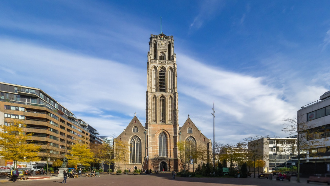 Церковь Святого Лаврентия — единственный памятник средневековой архитектуры, сохранившийся в Роттердаме после Второй Мировой войны. Храм в готическом стиле был возведён в XV веке. При восстановлении зданию вернули первоначальный внешний облик, но кардинально переделали внутреннее пространство. Теперь оно представляет собой современный интерьер с инсталляциями из зеркал, кафе, где можно выпить чашку чая. В церкви создан музей истории храма и арт-пространство, где в движущихся интерактивных картинах представлены все религии мира. В церкви проходят богослужения, светские мероприятия, концерты органной музыки.
