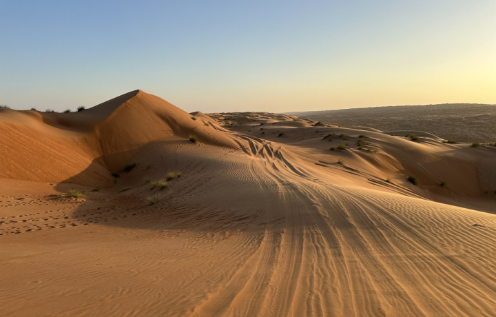 Моя вторая экскурсия от Трипстера за время пребывания в Омане. Порядок действий мне уже понятен - в пятницу днём забронировал экскурсию на сайте и внёс предоплату переводом. Получил подтверждение, позже со мной связался организатор, уточнил название отеля и дал рекомендации по завтрашней поездке. Вечером в Ватсапп написал уже сам гид, оманец и подтвердил время выезда утром - в 8-00 из отеля. Утром точно в назначенное время забрал меня, машина Toyota Land Cruiser, я был первым из мини - группы, устроился на переднем сиденье, поскольку в пути очень много снимаю фото и видео и для меня это важно. Потом заехали ещё в один отель, забрали трёх молодых людей - двух поляков и немца. В этом составе и ездили весь день. Между собой общались по английски. Параллельно с нами ездила ещё одна машина с девчонками - подружками этих ребят, с ними мы пересекались на остановках. Ехали вглубь страны к границе с пустыней Рамлат-эль-Вахиба. Заехали в саму пустыню, поездили по дороге и барханам. Пустыня очень впечатляет, мне доводилось быть в Тунисе, затем в Катаре, везде она разная, но здесь особенно красивая, оранжевый песок до самого горизонта. Сделали остановку для фото и осмотра. Потом двинулись дальше, в пределах часа доехали до дома бедуинов, зашли внутрь, пили кофе с финиками, попробовали верблюжье молоко. Пообщались с хозяином дома, он рассказал, что не так давно здесь была съёмочная группа из России, делали сюжет о жизни бедуинов. Любопытно было осмотреть дом и быт. Потом ребята покатались на верблюдах, а я еще пообщался с хозяином и пофоткал дом и пустыню вокруг. Дальше поехали по направлению как оазису Вади Бани Халид, от машины пешком минут 10. Можно оставить свои вещи, переодеться и купаться в воде, очень чистая и хорошо освежает после поездки. Время дали час. Я успел ещё прогуляться вглубь ущелья, виды там отличные. Потом покормили обедом, шведский стол - курица, рыба, рис, овощи, лепешки. И уже после этого двинулись в обратный путь, к 18-00 был у своего отеля