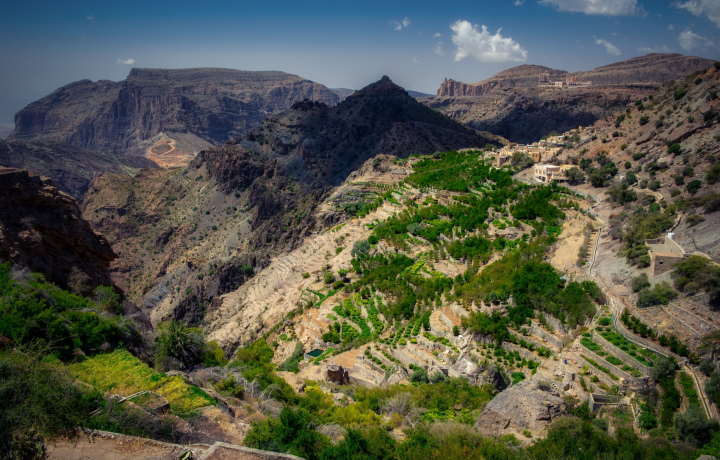 Следующей остановкой станет живописная деревня Биркат Аль Муз, расположенная у подножия Джебель Ахдар. Здесь вы познакомитесь с древней системой ирригации Фаладж, включённой в список Всемирного наследия ЮНЕСКО, прогуляетесь среди глиняных домов и финиковых рощ, окунётесь в атмосферу сельской жизни оманцев.