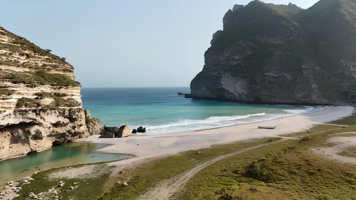 Пляж Аль-Фазайя. Три бухты, чистейшая вода и мягкий песок. Здесь можно искупаться, посидеть в тени скал или просто насладиться тишиной.
