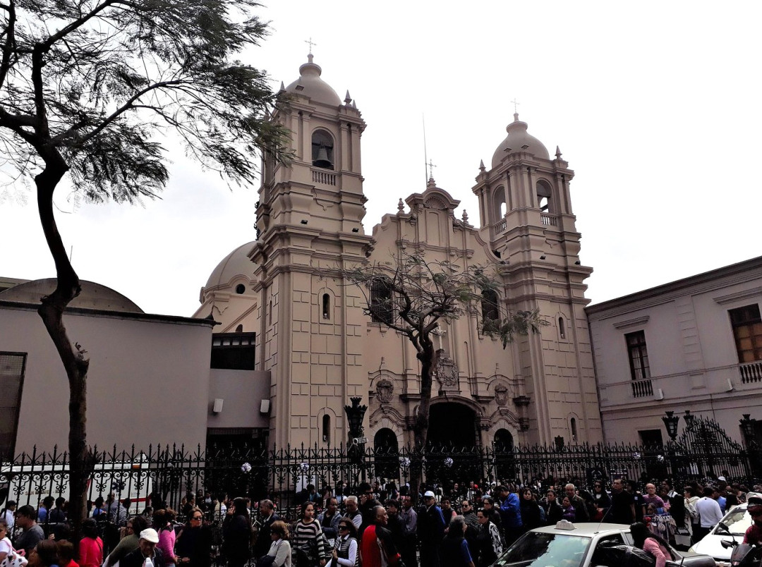 На восточной стороне центральной площади Пласа Майор возвышается величественный кафедральный собор — главная католическая святыня Лимы, объект Всемирного наследия ЮНЕСКО. Строительство первой церкви Святого Евангелиста Иоанна началось в 1535 году, вскоре после основания города испанским конкистадором Франсиско Писарро. Нынешний собор — третий по счёту, два предыдущих были разрушены землетрясениями. Он возводился в XVII–XVIII веках на руинах своих предшественников, постепенно обретая готические, ренессансные, барочные черты. Центральный портал «Portada del Perdon» украшают скульптуры святых, лепнина, резные детали. Симметричные башни-колокольни выполнены в классическом стиле. Позади храмового комплекса располагается внутренний двор Патио-де-лос-Наранхос, сохранивший традиции испанской колониальной архитектуры.