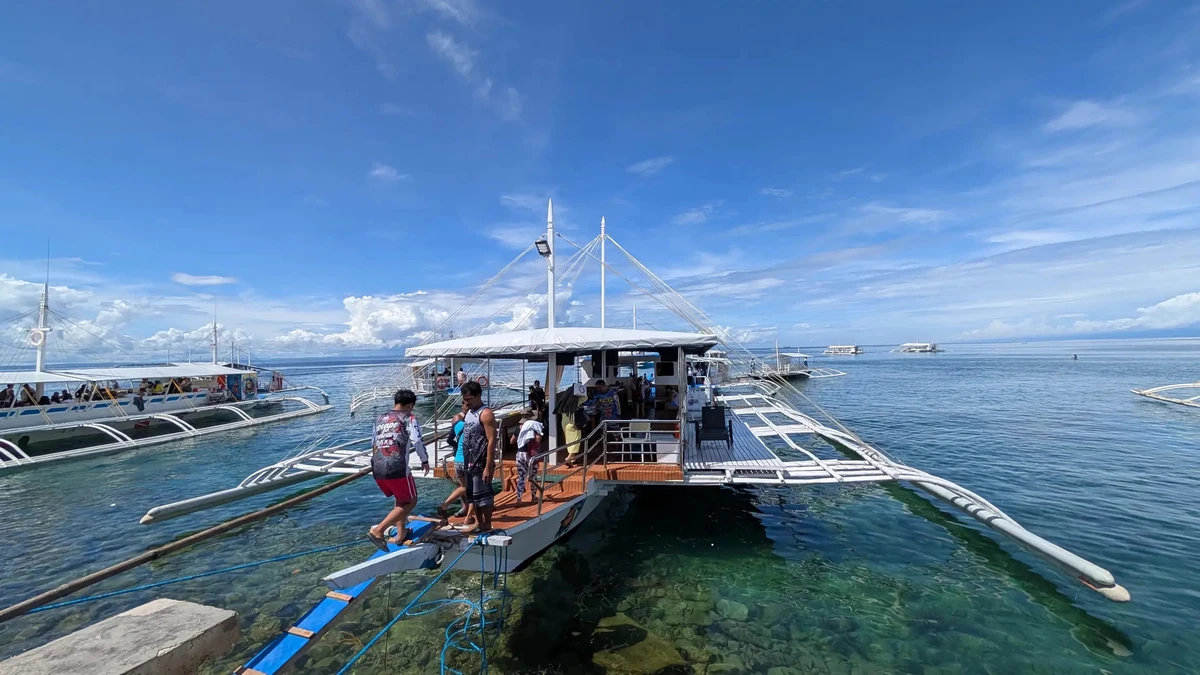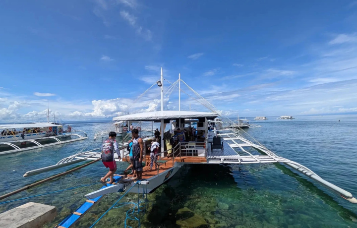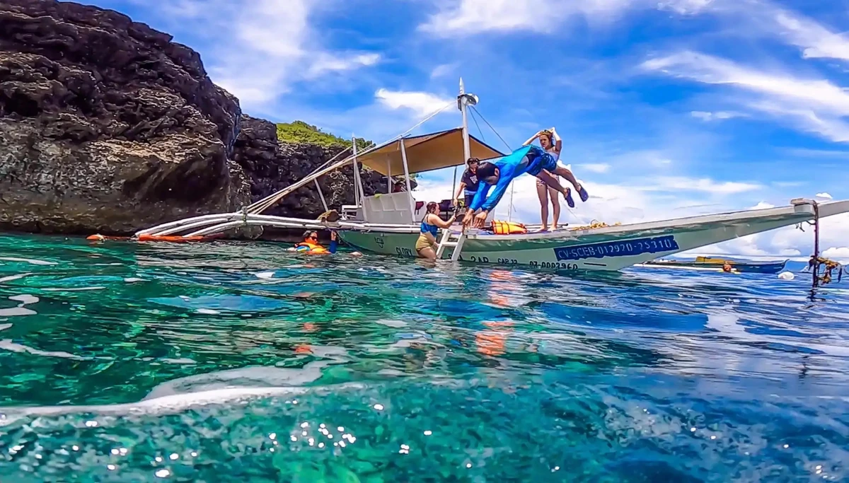 8:00 — встретим вас у отеля в Себу или на о. Лапу-Лапу (Мактан) и доставим к берегу. Вы разместитесь в филиппинской лодке — бангке — и отправитесь на водную прогулку с остановками на островах