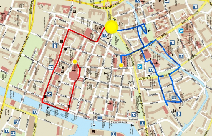 Мы подготовили два насыщенных маршрута по ключевым местам Гданьска. Рекомендуем начать знакомство с городом с Красного маршрута, а на следующий день углубиться в историю Гданьска на прогулке по Синему маршруту.