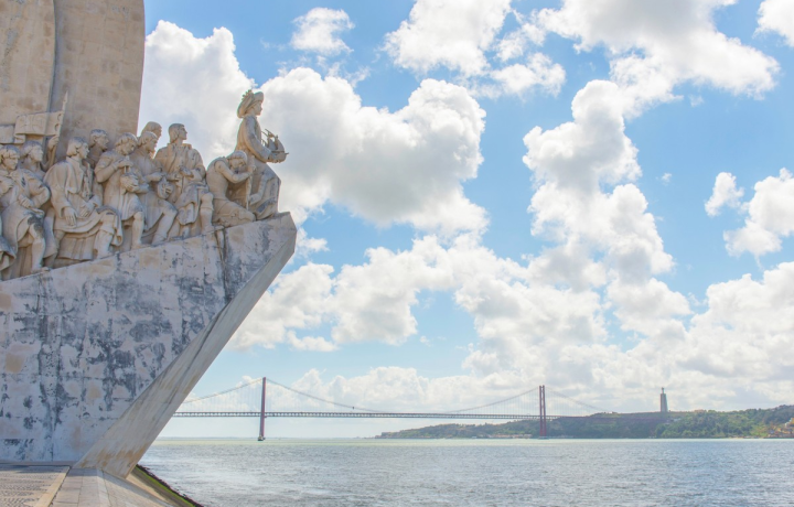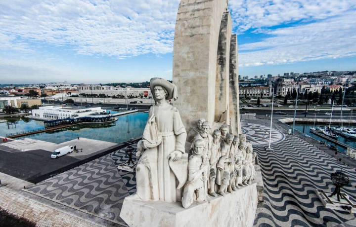 На берегу реки Тежу возвышается Памятник Первооткрывателям. На носу каравеллы — фигура вдохновителя географических открытий, инфанта Генриха Мореплавателя, а по обе стороны за ним 32 фигуры выдающихся португальцев. Я расскажу о героях монумента, а вы сможете подняться на смотровую площадку, откуда открывается панорамный вид на старинный квартал и реку. На площади у подножия памятника мы рассмотрим мраморную розу ветров — мозаичную карту мира с маршрутами и датами морских экспедиций XV–XVI веков.