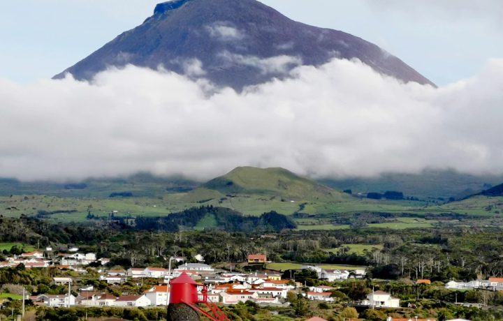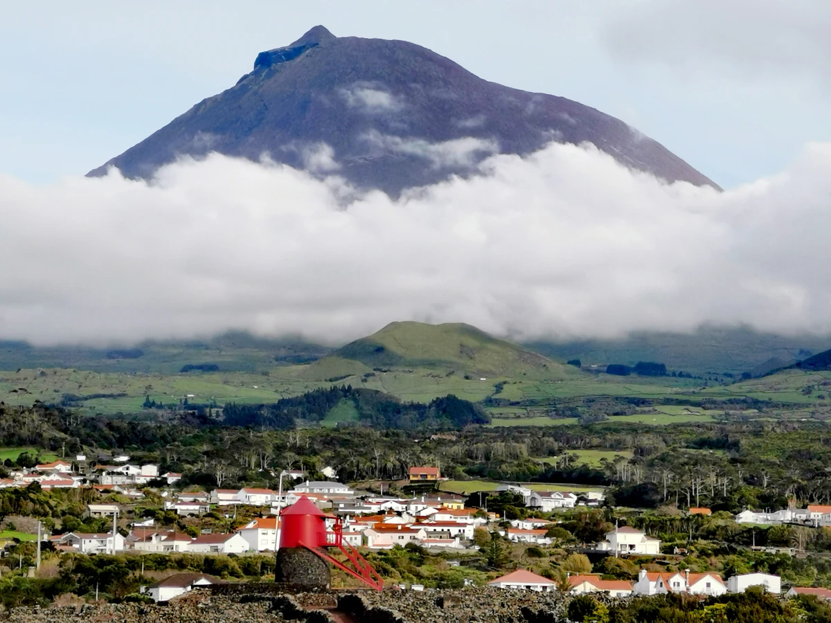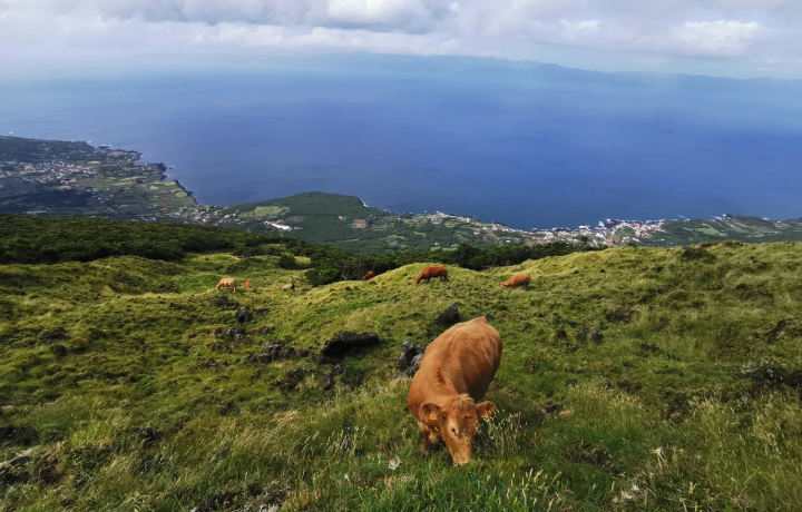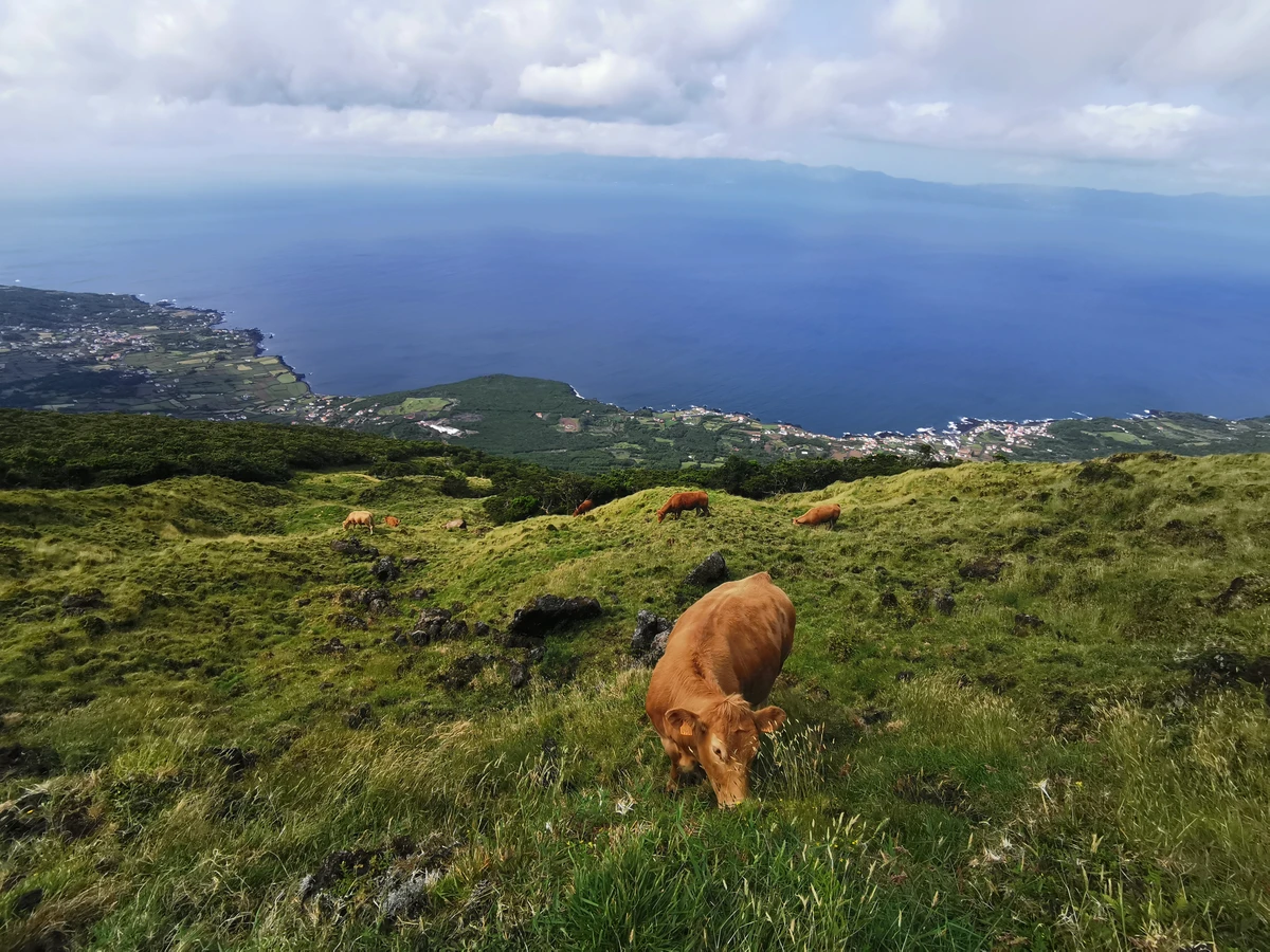 Остров также называют чёрным — из-за обрамляющих его базальтовых плит и скал, образованных когда-то текущей и переваливающейся лавой. В местечке Аркуш-ду-Кашорру вы прогуляетесь между скал и понаблюдаете, как в арках сталкиваются потоки воды. А затем подниметесь на высокогорную дорогу, с которой вам откроется лучший вид острова: вечнозелёные пастбища с мирно пасущимися коровами на фоне огромной, почти симметричной горы Пику с вулканом Пикинью. И посетите красивое Капитанское озеро, в котором в ясную погоду отражается азорский великан.