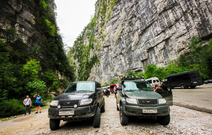 Отправиться на внедорожнике к древнему каньону, Голубому озеру и Рице из Адлера.