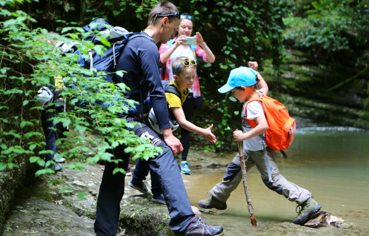 Залезть на большой валун, кидать камни в реку, смотреть, как улитка везёт свой домик или убегать от огромной стрекозы. Жарить зефирки на костре и подбрасывать в него палочки. У детей на природе появляется много важных дел! Мы отправимся в живописные окрестности реки Псахо, где совершим несложный треккинг. Вы отлично отдохнёте среди разнообразных пейзажей.