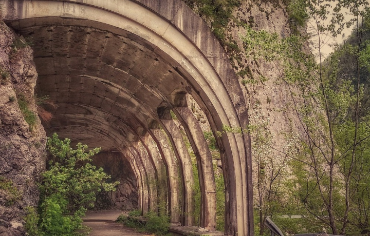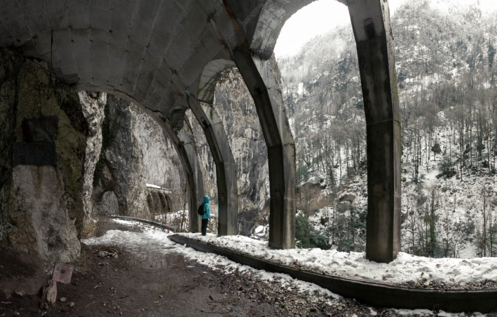 Несомненно, одним из самых загадочных инженерных творений конца позапрошлого века стало Краснополянское шоссе, построенное горным инженером Василием Константиновичем Константиновым. Вы узнаете историю строительства дороги «Пронеси, Господи!» и поразитесь смелости инженера, а также насладитесь живописной панорамой ущелья Ахцу и реки Мзымта. Вы поймете, почему ущелье прозвали глубочайшим шрамом, рассекающим лицо Кавказа и отметите сходство «Реберных» тоннелей со скелетами огромных китов. Пусть это не удивляет вас, ведь мы на дне верхнеюрского моря! Вряд ли можно найти более атмосферное место для съемок.