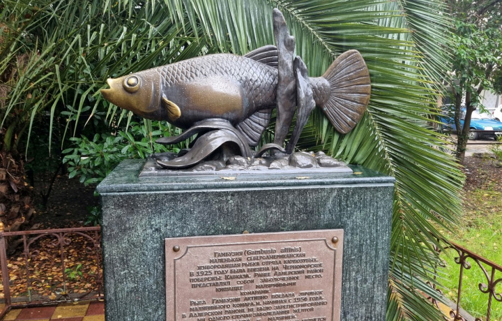 Памятник рыбке-гамбузии. Вы догадаетесь, как эта маленькая рыбка победила малярию и подарила Адлеру звание курорта.