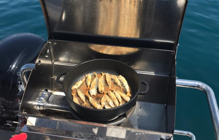 Мы отойдём подальше от берега, где воды богаты ставридой, барабулей, хеком и другой некрупной рыбой. Вы закинете удочки и испытаете удачу, а капитан пожарит улов на гриле. С борта полюбуетесь черноморскими просторами, олимпийскими объектами, пляжами, горами. Если повезёт — встретите дельфинов, а в сезон сможете искупаться.
