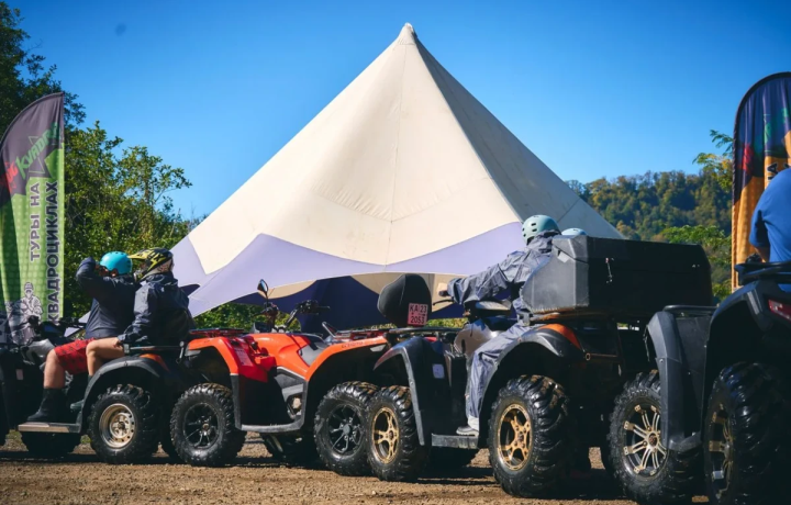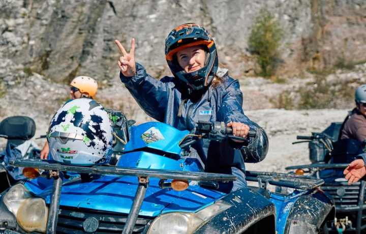 Шлем, рёв мотора — и вы уже мчитесь в сторону кавказских вершин. На квадроцикле доберётесь к смотровой площадке у Скайпарка, а по пути увидите Мзымту и Ахштырский карьер — одну из самых ярких локаций в окрестностях Сочи.
