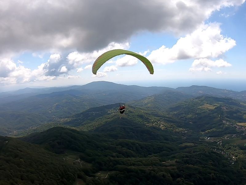 Полет проходил в Абхазии город Гагра с высоты 1300 метров. На высоте мы погрузились в облака и медленно спустились в ущелье где открылись потрясающе виды на могу и сам город. Пилот Петр мастерски совершил полет который длился 27 минут, эмоций более чем достаточно чтоб ы помнить эти моменты еще долгое время. Всем советую!