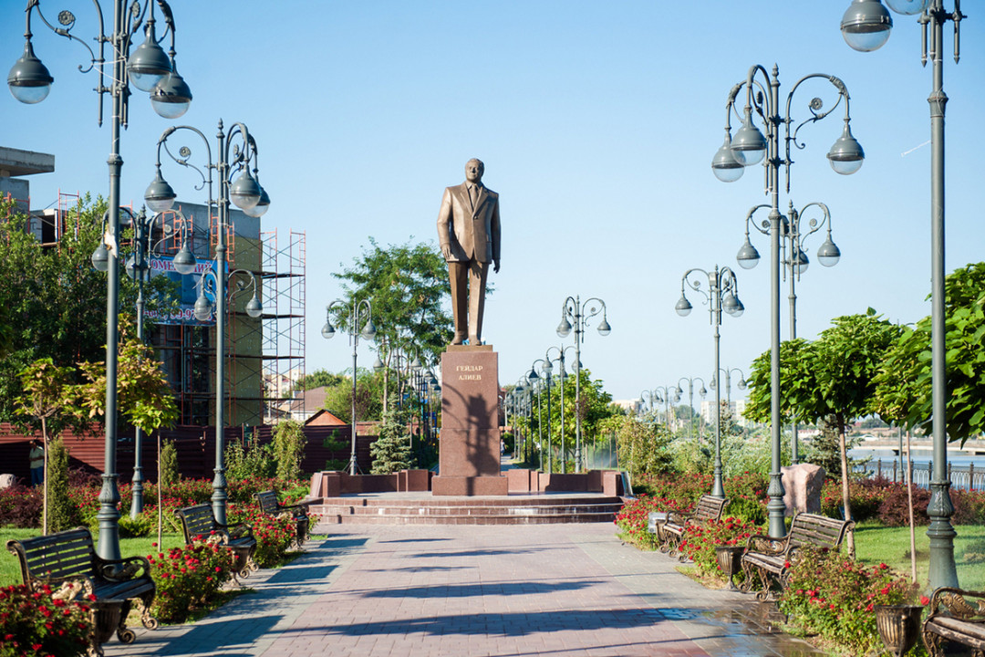 Сквер Гейдара Алиева открыт в Астрахани в 2011 году. Зона отдыха протянулась по набережной от Лебединого озера до моста через Приволжский затон у храма Святого Князя Владимира. В центре установлен памятник первому президенту Азербайджана. Рядом с монументом построен пешеходный мост, соединяющий сквер Алиева и проспект Гужвина, ведущий к памятнику Петру Великому.