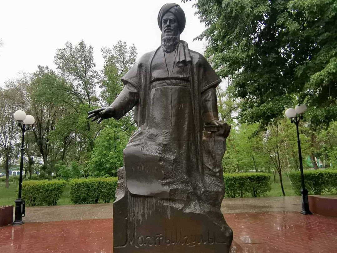 В сквере у главного корпуса Астраханского университета в 2009 году был установлен памятник туркменскому поэту, философу, мыслителю XVIII века Махтумкули Фраги. Город получил монумент работы скульптора Сарагта Бабаева в дар от Президента Туркменистана. Фраги много путешествовал, в конце жизни он побывал в Прикаспии, в том числе посетил Астрахань. Автор изобразил Махтумкули в национальной одежде с приподнятой правой рукой, словно он обращается к невидимым слушателям. В левой руке поэт держит книгу.