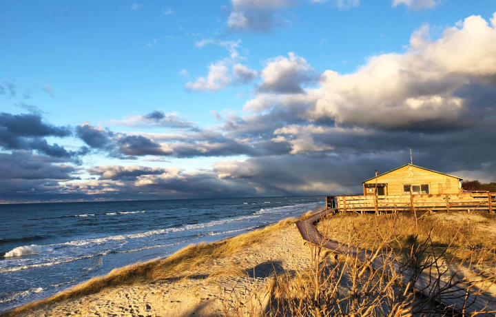 Сюда приезжают за песчаными пляжами и морской историей. На косе располагаются: