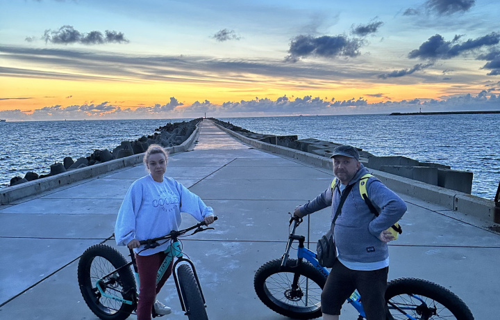 Экскурсия понравилась! Но! Организаторы всё же лукавят, когда в описании указали, что спец.подготовка не требуется. Несмотря на то, что большая часть прогулки проходит по взлётной полосе бывшего аэродрома и там довольно легко ехать, но по факту (если ориентироваться на время), потом, когда съезжаешь на грунт (который оказывается песком), крутить педали большую часть времени очень сложно и приходится этот фэт-байк таскать за собой. Виды супер! Балтийская коса довольно дикая - нет никакой инфраструктуры для туристов (это нужно учитывать). Только редких "дикарей" с палатками и на авто можно встретить по дороге. Место очень клёвое. !Организаторам я бы посоветовала всё же предупреждать желающих, что нужно довольно неплохо уметь управлять велосипедом и иметь физическую силу таскать этот велик за собой. Нас было 4 человека: я с мужем, дочь 19 лет и сын 11 лет. Сын вообще на велике легко гоняет по пересечённой местности - он был в восторге, для дочки тоже труда не составило (она довольно спортивная). Нам с мужем было прикольно, но "физические затраты" мы ощутили. !Ещё хотела бы обратиться к организаторам: лучше всё-таки сократить время знакомства с военно-историческими объектами (полуразрушенный аэродром, заброшенный корабль, укрытие немецких солдат) в пользу времени, которое можно провести на самом диком пляже косы! Нам, например, именно этого всё-таки не хватило! :( Потому что в такой природной красоте хочется побыть подольше! Но всё равно - очень понравилось! СПАСИБО!