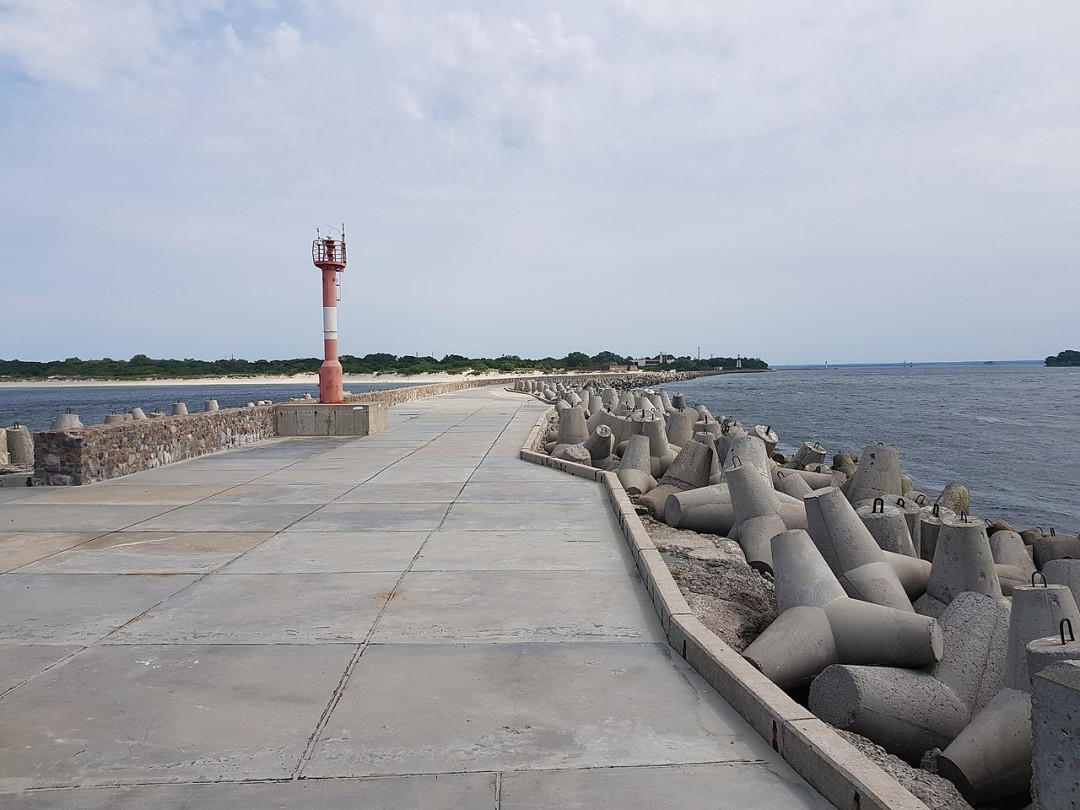 Торжественное открытие Северного мола на пилаусском полуострове состоялось в 1883 году. Вместе с Южным молом, который соорудили на оконечности Вислинской косы в 1836 году, они предотвращают обмеление и занос песком пролива, защищают его от встречных течений. Длина Северного мола — 525 м, ширина оконечности — 12 м. На краю возвышается навигационный знак подающий красный световой сигнал судам, заходящим в пролив. Рядом устроена смотровая площадка. Берега мола укреплены бетонными тетраподами. К площадке проложена удобная дорога, выложенная плитами.