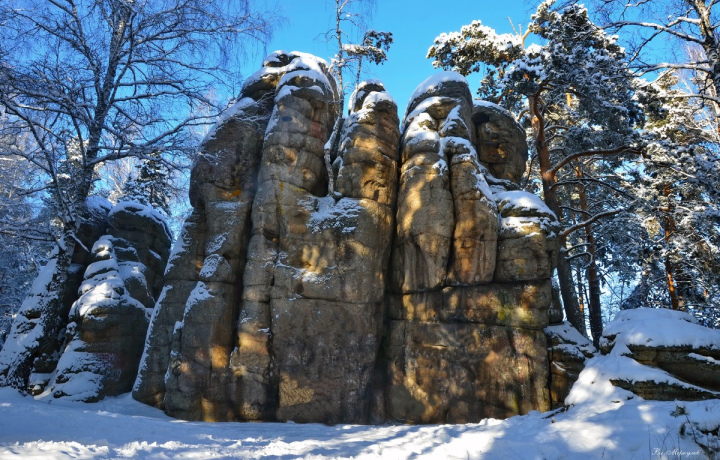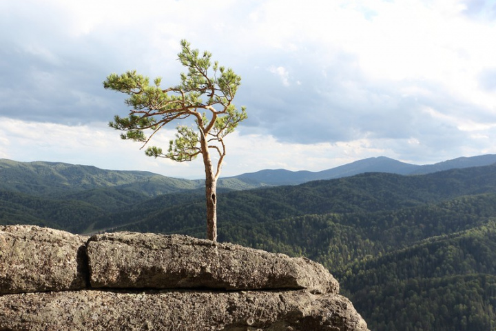 Одинокая сосна на склоне горы Круглая — маленькая достопримечательность Белокурихи, которая стала одним из символов города-курорта. Когда-то крохотное семечко проросло в скальной расщелине и превратилось в дерево, одиноко нависающее над родным лесом. Рядом с сосной ощущается спокойствие и гармония природы. Со скалы открываются потрясающие виды алтайских гор.