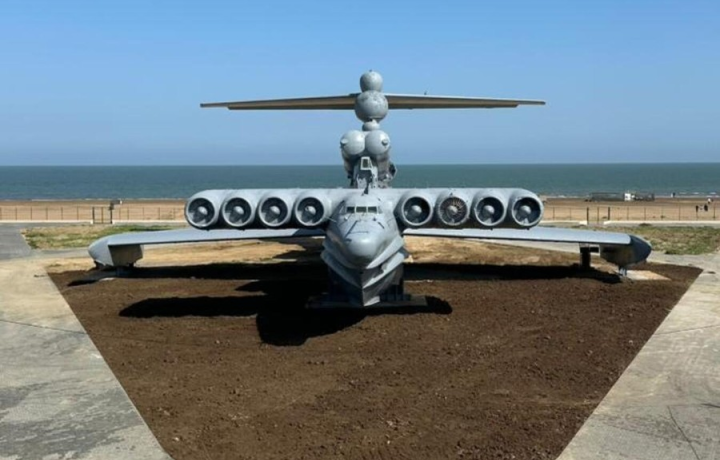 13:00 — чёрные пески Каспийского моря и экраноплан «Лунь» — символ советской инженерной мысли